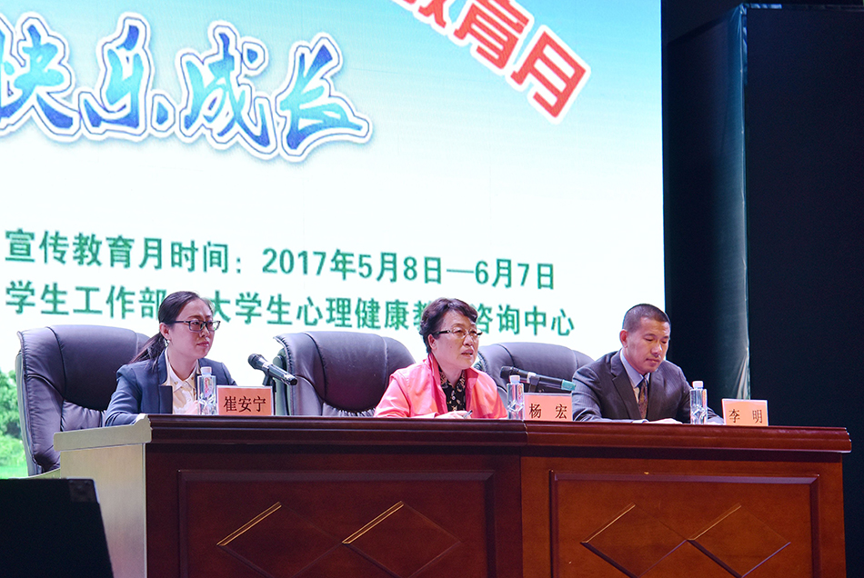 5月12日中午,学校在明德楼礼堂召开第十届“5.25”大学生心理健康宣传教育月启动大会。党委副书记杨宏、学生工作部部长李明及各学院党总支书记、副书记、心理辅导站站长、辅导员、学生心理委员、学生寝室心理联络员近千名师生参加了会议。会议由学生工作部大学生心理健康教育咨询中心主任崔安宁主持。会上,学生工作部部长李明宣读《开云足球竞猜下载第十届大学生心理健康宣传教育月活动方案》;计算机与信息工程学院辅导员陈正堂代表心理辅导站站长发言;教育科学学院学生李廷彬代表学生干部宣读了大学生心理健康倡议书。