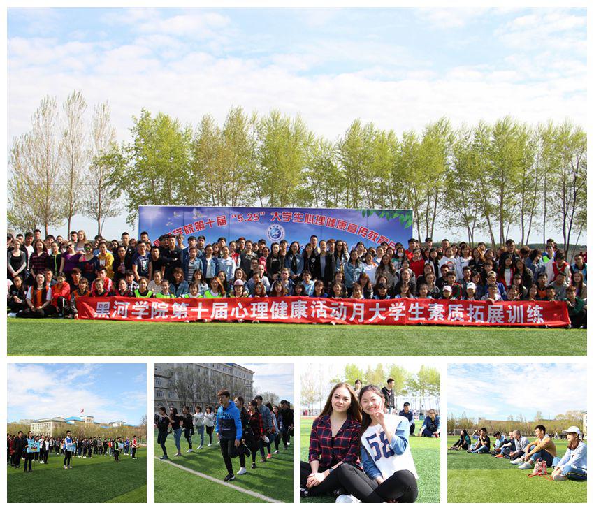 5月14日下午,伴随着口号声、喝彩声、歌声、笑声……我校田径场上举行了一场别开生面的大学生心理素质拓展训练,吸引了多名俄罗斯留学生参加,来自11个学院的200余名学生在心理辅导站老师与同学们的指导下,分别参加了“能量传递”“火车快开”“盲人摸象”“不倒森林”“同心击鼓”等5个活动项目,中俄大学生一起互动、参与、分享、交流,感受心理素质拓展训练的魅力。