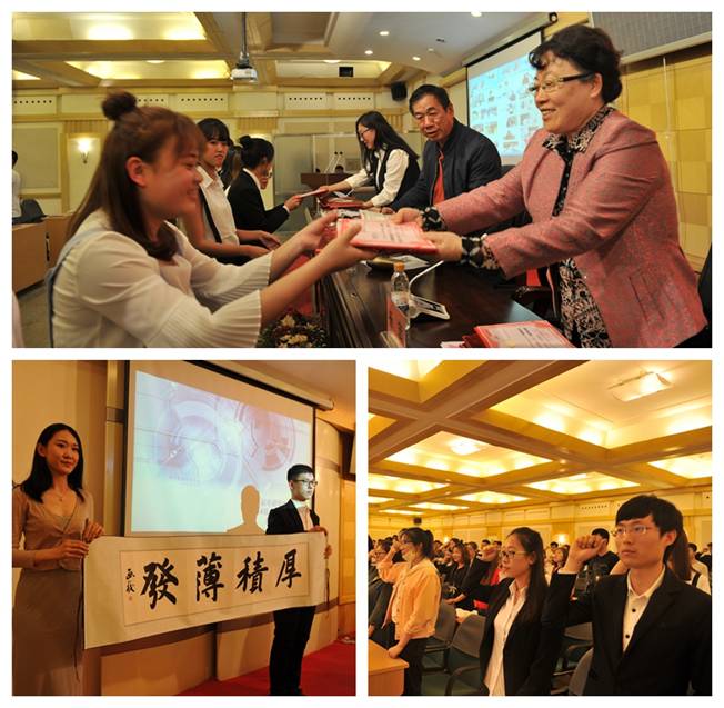 会上,理学院党总支书记刘立宣读了《考研规划与心理调适经验交流会活动方案》,2017届优秀考研学生代表胡婷婷和2018年考研学生代表赵煜博分别作了发言。美术与设计学院考取书法专业研究生的李函校同学将亲自书写的开云足球竞猜下载考研精神“厚积薄发”传递到了2018届考研学生的手中,全体同学在主持人的带领下庄严宣读考研誓词。与会领导为参加交流会的2017届考研学子颁发了“考研励志之星”证书。