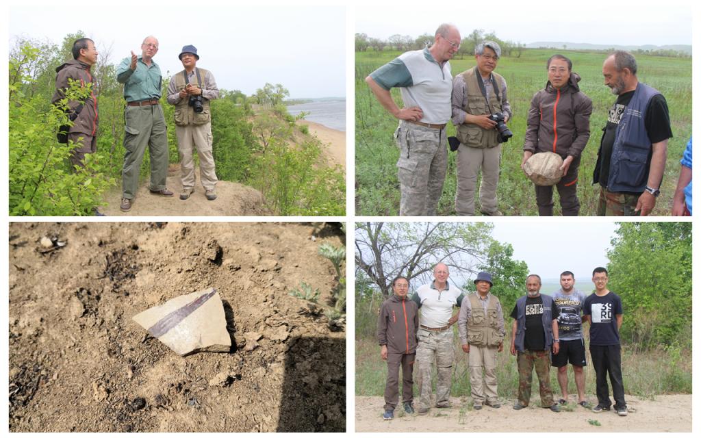 考察组先后对坐落在结雅河下游两岸的四座古城遗址和一处上古人类墓葬群进行了田野调查。中俄两国科考队员通力合作,获得新的重大发现,圆满的完成了本次考察任务。 谢春河教授在七湖古城遗址和布利亚奇诺古城遗址分别采集到了女真人使用的瓷器残片和青铜时代的石器。经考察队中方首席专家王禹浪教授认定,这枚瓷器残片,为我国北方窑系烧制的磁州窑“清酒肥羊四系瓶”残片;石器为距今三千年前青铜时代古人类使用的花岗岩磨砺石。这在黑龙江中上游左岸地区均属首次发现,对于研究黑龙江流域古代文明发展史,以及确定黑龙江流域文化圈均具有重要意义。