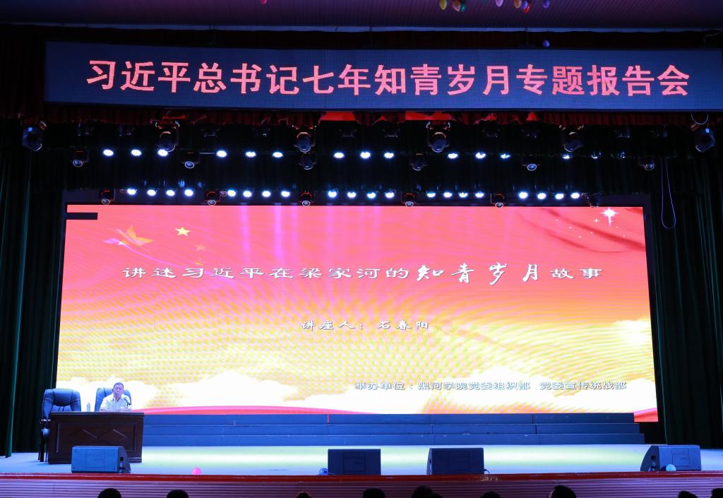 报告会上,石春阳同志围绕坚定理想信念、勇于担当、艰苦创业、为民情怀等方面,用质朴的陕北方言,朴素的情感表达,娓娓讲述了习近平总书记当年在陕北延川梁家河带领父老乡亲艰苦创业、修田打坝、铺砌公路、筹建沼气、兴建铁艺社、经商便民、勇过“五关”等鲜为人知的故事。