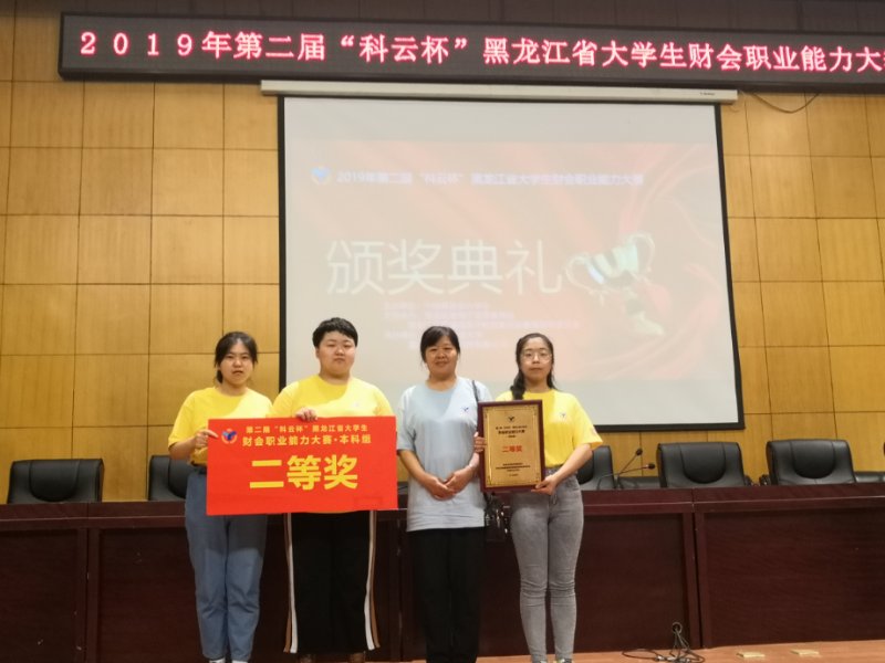 本网讯(特约记者 尤春明)5月26日,由中国商业会计学会主办,黑龙江省教育厅高等教育处指导,哈尔滨商业大学承办的黑龙江省第二届“科云杯”大学生财会职业能力大赛在哈尔滨商业大学举行,我校选派的由经济管理学院教师张春莲带队,李月秋、尤春明指导的参赛队表现优异,荣获大赛二等奖。