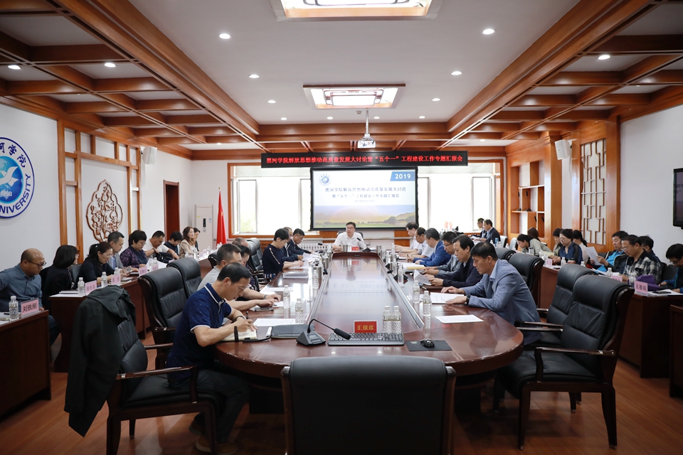 本网讯(记者 赵宇 摄影 葛艳宇)6月19日,学校在明德楼三楼会议室召开解放思想推动高质量发展大讨论暨“五个一”工程建设工作专题汇报会。学校领导班子成员,各学院、各部门相关负责人参加会议。