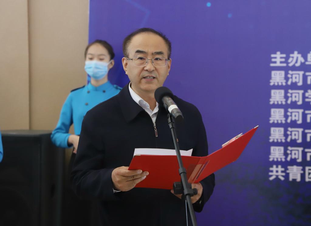 副校长许海深在开幕式致辞中,表达了我校师生对立足黑河,面向地方需求,努力培养更多更好的高质量落地人才,为黑河市经济、社会、文化发展,积极贡献力量的决心。希望参加招聘会学生深入了解企业,把握机遇,选择适合自己的岗位;前来招聘的用人单位能从我校毕业生中择优选才,为我校毕业生的成长和发展提供良好的平台。