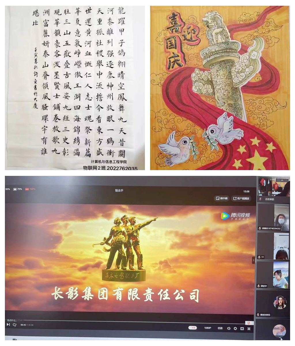 此外,外国语学院、经济管理学院、理学院等学院围绕弘扬爱国主义精神和社会主义核心价值观,分别组织了“走出寝室,迈向阳光”校园户外走扁带活动、“爱国心·强国梦”知识竞赛、“缤纷校园,艺彩飞扬”手工折纸比赛、“我为祖国“绘画手抄报、“写给祖国的祝福”手写信、“我为祖国比心”等形式丰富的活动,引导广大青年坚定理想信念,不断增强民族自尊心、自信心和自豪感,以赤诚爱国心祝福祖国,以真挚爱国行献礼祖国,赓续“永久奋斗”精神基因,以个人“小我”熔铸强国“大我”。