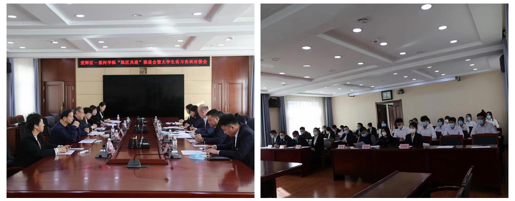 本网讯(特约记者 李光)为深入推进院区共建,实现资源共享、优势互补、合作共赢,3月8日上午,我校党委委员、副院长许海深带领教务处、文化旅游学院、外国语学院、人文传媒学院相关负责人以及18名顶岗实习学生赴爱辉区政府参加“院区共建”推进会暨大学生实习实训对接会。爱辉区委常委、副区长华东出席会议并讲话,爱辉区政府办、组织部、人社局、文广旅局等相关部门负责人参加会议。