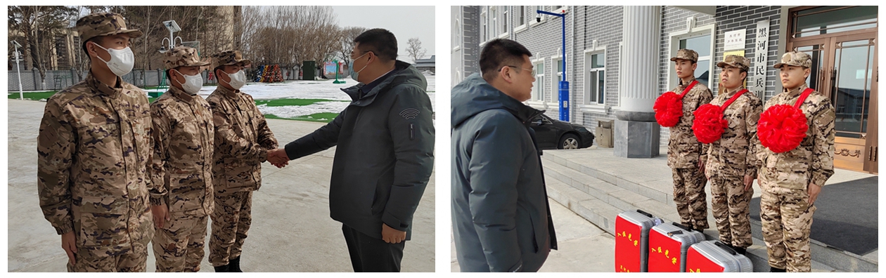 本网讯(特约记者 梁策)3月15日,党委副书记王春雷率领学生工作部(处)·武装部负责人赴瑷珲研学基地欢送我校2023年春季应征入伍大学生。外国语学院、美术与设计学院、体育学院的3名大学生在学校所在地被批准入伍。