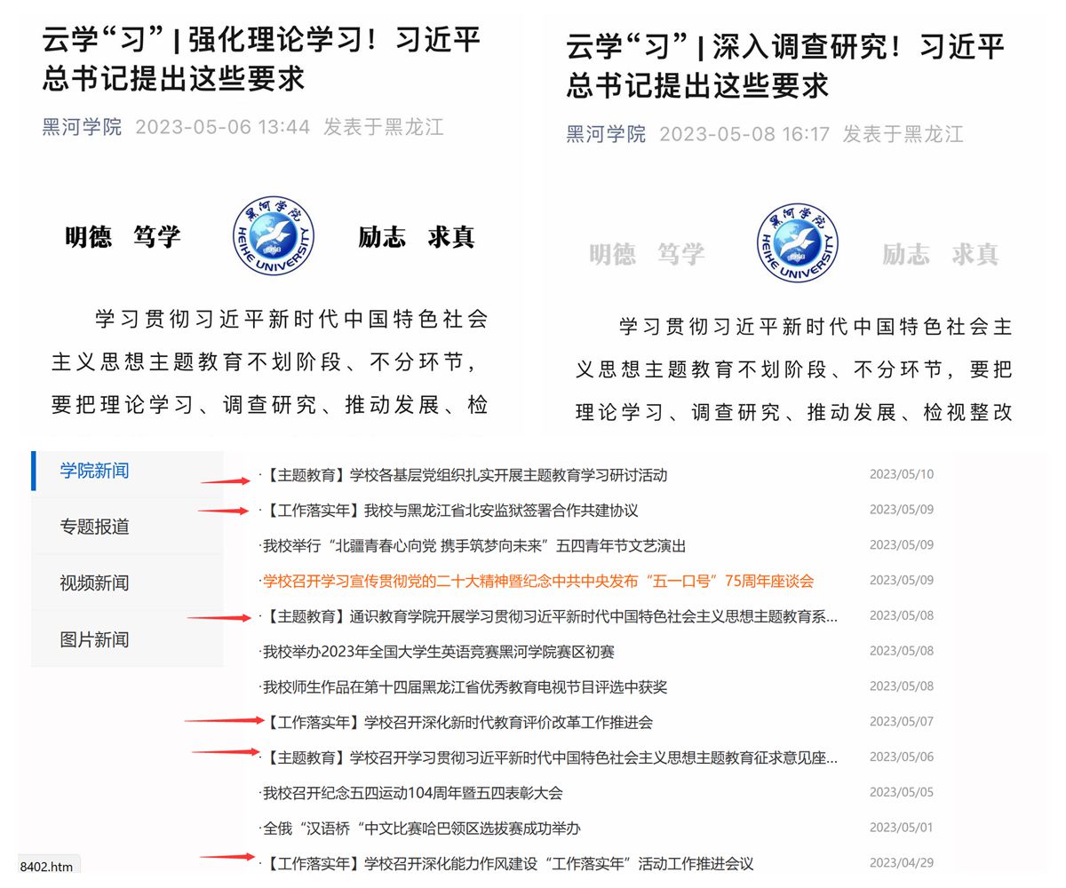 线上线下联动,推送学习资料全覆盖。学校为副处级以上干部发放主题教育必读书,通过校园网、微信、抖音、微博等官方平台以及校内各宣传阵地播放工作落实年及主题教育宣传内容;开设“主题教育”和“工作落实年”报道专题,共计发布新闻报道13次,线上线下相结合,全面形成开展主题教育的浓厚校园文化氛围。