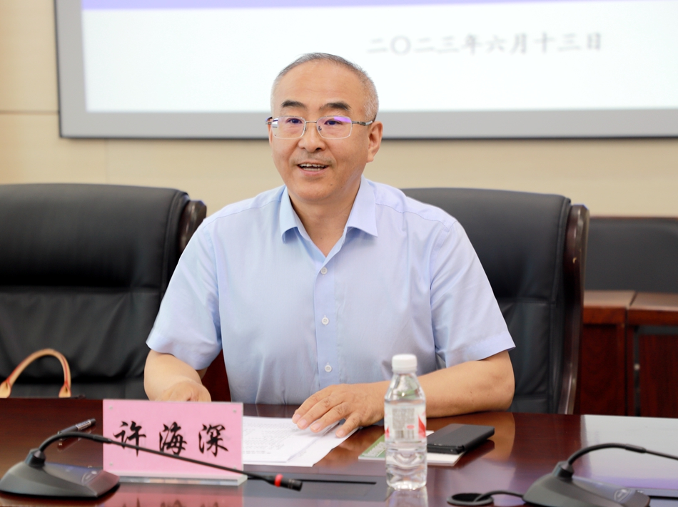 许海深代表学校对工作组的到来表示热烈欢迎,全面介绍了学校的基本情况、办学特色、语言文字工作及语言文字推广基地筹备建设情况,并指出学校将进一步发挥国家级通用语言文字示范校作用,坚持持之以恒全面推进学校语言文字建设工作,多措并举加强中华优秀语言传承与保护工作,全面加快学校语言文字推广基地建设。