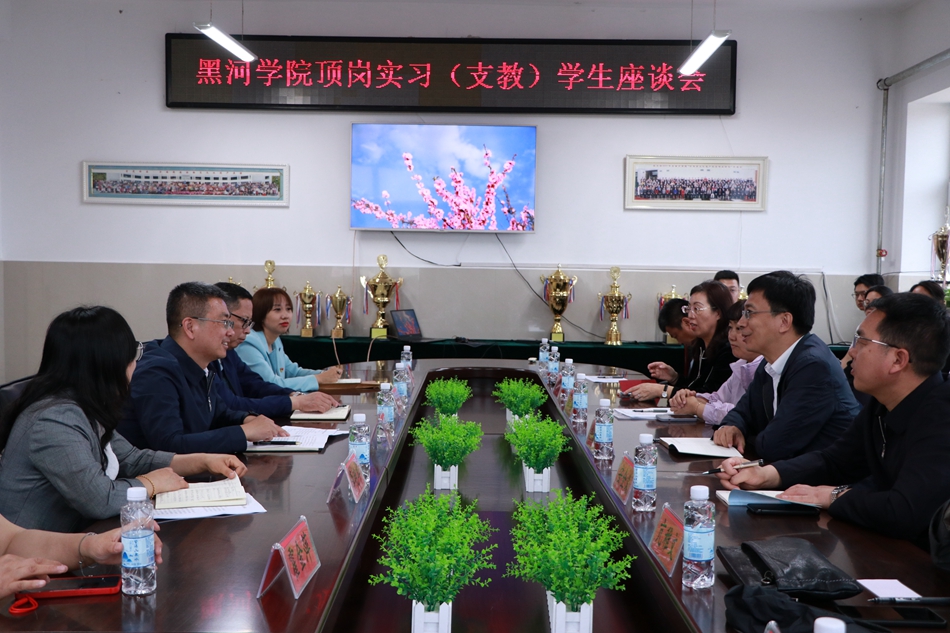 在与顶岗实习(支教)学生的座谈中,地方政府领导对我校实习大学生们在实习单位表现出吃苦耐劳、勇于担当的敬业精神和综合素质给予了高度评价,对我校高质量的开云网站登录、为地方输送优秀人才表示衷心地感谢,希望双方继续加强合作,推动校地合作深入开展。实习(支教)大学生代表纷纷发言,分享自己的实习工作经历,感谢学校和逊克县委、县政府给予的实习机会,在逊克这座温暖的小城工作充实且愉快,生活环境整洁且舒适,受益匪浅,收获满满,希望有机会能够留在逊克,扎根边疆、服务边疆。