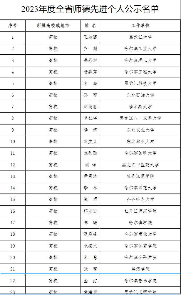 本网讯(特约记者 葛旭凤)日前,黑龙江省教育厅公布了全省教育系统2023年师德先进集体、师德先进个人评选结果。我校马克思主义学院教师张萌荣获黑龙江省教育系统师德先进个人称号。