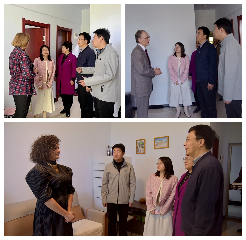 校领导在友谊楼公寓与外籍教师们进行了亲切交流,详细了解他们的工作和生活情况,感谢他们一直以来在教学工作中的辛勤付出和对学校工作的大力支持,学校将尽可能为外籍教师提供优质服务,让外籍教师感受到家一般温暖,希望他们工作顺心,生活幸福。