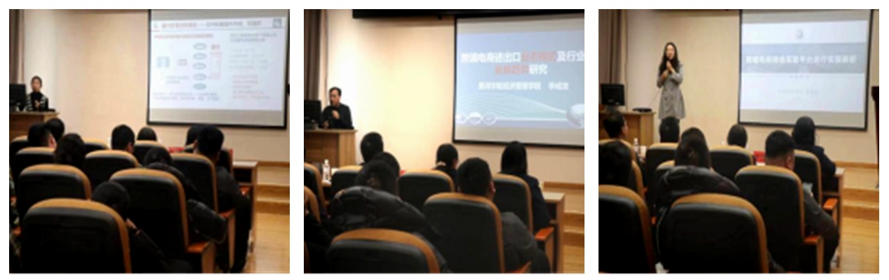 座谈会上,中国信保黑龙江分公司、经济管理学院的报告人郭姝萌、李成龙、李凌慧分别作《政策性出口信用保险服务外经贸高质量发展》《跨境电商进出口业态模式及行业发展趋势研究》《跨境电商综合实验平台运行实操解析》主旨报告。