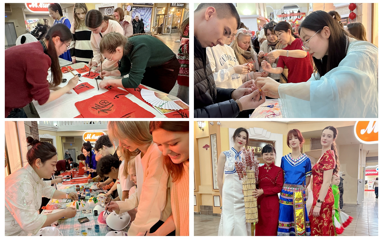 2月2日,由我校与布拉戈维申斯克国立师范大学共建的孔子学院、布拉戈维申斯克市文化馆、布拉戈维申斯克市图书馆、群岛贸易娱乐中心共同主办的,中俄共庆“中国年”系列文化活动在俄罗斯阿穆尔州首府布拉戈维申斯克市群岛贸易娱乐中心举行。活动现场张灯结彩、热闹非凡,孔子学院教师身着唐装汉服、精美旗袍,现场写福字、送福字、编中国结、绘制脸谱;孔子学院老年大学表演的集体舞、白山文化局演唱的《中国祝福歌》,师生们精心准备的筷子夹花生游戏,将现场气氛推向高潮,中俄民众共同体验中国传统文化,共迎喜庆佳节。