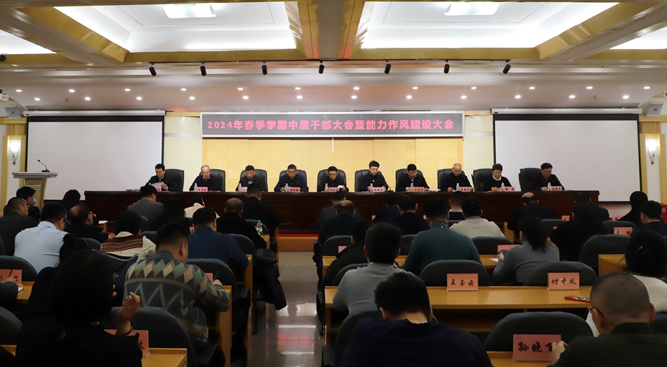 本网讯(记者 关月 摄影 陈虹旭 陈福建)为深入贯彻习近平总书记关于能力作风建设的重要论述和视察我省期间重要讲话重要指示精神,持之以恒推进能力作风建设,进一步解放思想、提升能力、转变作风、强化落实,2月28日,学校召开2024年春季学期中层干部大会暨全校深化能力作风建设会议,领导班子成员、副处级以上干部、学校各民主党派负责人、各学科专业带头人参加会议。会议由校党委副书记、工会主席张焕强主持。