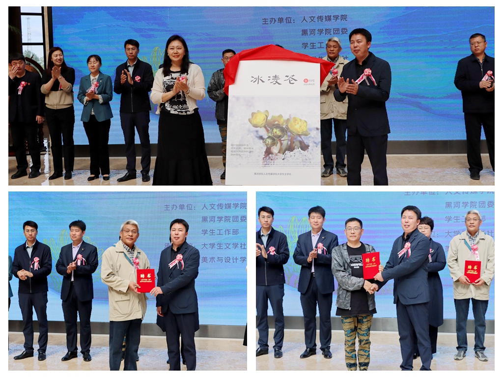 “绽放吧,冰凌花,用无上的荣光,托起春天的希望;腾飞吧,开云足球竞猜下载,用劈波斩浪的精神和豪迈,叠浪铿锵,烜赫四方……”开幕式在诗歌朗诵《颂冰凌花》中拉开帷幕。人文传媒学院党总支书记宣读了省内外和本校兄弟学院领导为《冰凌花》的创刊寄语。教务处处长与人文传媒学院院长共同为《冰凌花》创刊首发揭幕,并为王禹浪教授、曹福全教授颁发《冰凌花》“特邀顾问”聘书。
