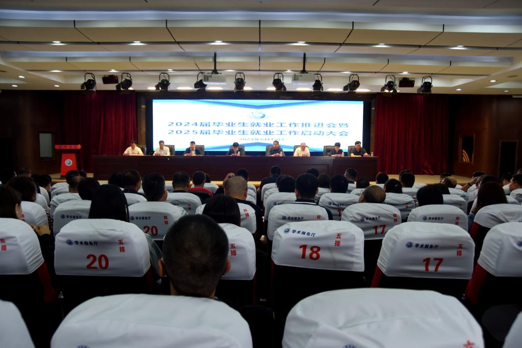 本网讯(记者 关月)为切实推动我校毕业生就业工作,提高就业质量,6月19日,学校召开2024届毕业生就业工作推进会暨2025届毕业生就业工作启动大会。校党政领导班子成员,副处级以上干部,全体辅导员,招生就业处、学生工作部、团委全体工作人员,各学院系主任和教师代表参加会议。会议由党委副书记、工会主席张焕强主持。