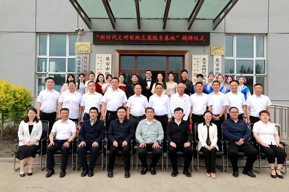 本网讯(记者 关月)“学生顶岗实践在哪里,志愿服务就跟进到哪里;干部挂职锻炼在哪里,志愿服务就延伸到哪里……”6月21日,学校联合北安市海星镇人民政府举行首个干部挂职所在地“新时代文明实践志愿服务基地”揭牌仪式,我校党委副书记、工会主席张焕强,宣传统战部、音乐学院、经济管理学院、美术与设计学院负责人;北安市委常委、政法委书记生震涛,北安市海星镇党委书记卢光,北安市海星镇人民政府副镇长、我校挂职干部马墨南及相关工作负责人,我校师生代表参加仪式。