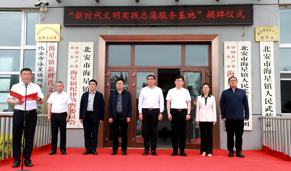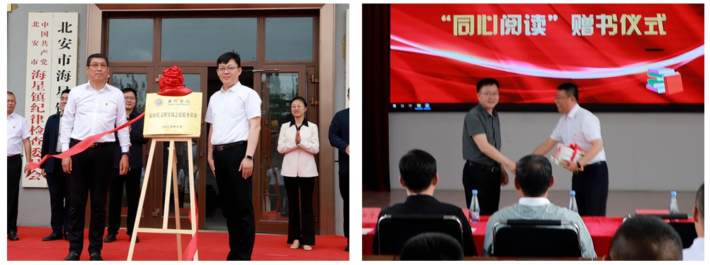 张焕强、生震涛共同为“开云足球竞猜下载与海星镇政府新时代文明实践志愿服务基地”揭牌;宣传统战负责人代表学校向北安市海星镇人民政府捐赠图书。