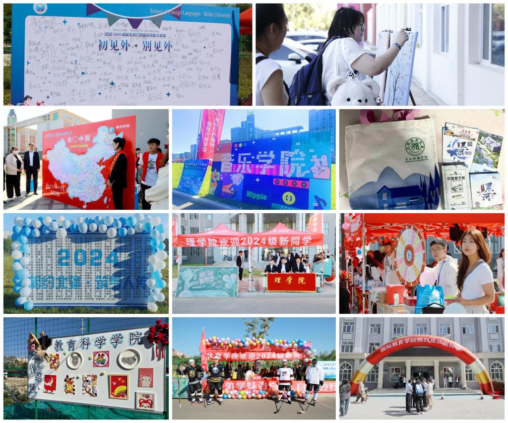 外国语学院辅导员和学生志愿者做好迎新准备,“一对一”迎接新生,送上入校第一份温暖,定制“初见外,别见外”签名墙,让学生和家长拥有大学“专属记忆”。美术与设计学院准备了特色“见面礼”,品味俄罗斯糖果,体验非遗漂漆工艺,开展了“学长学姐送一下”“等个同学一起走”“辅导员跟你约个饭”友谊“手牵手”活动。经济管理学院录制了学长学姐寄语视频,设立“新生家乡梦想墙”,新生在书签上写下对大学生活的期待。音乐学院设计了创意合影环节,新生们在“青春相伴,逐梦前行”的照片墙前留下了与学院的第一张照片。文化旅游学院准备了“文旅大礼包”,中俄双子城旅行手记、黑河市文旅手册、文旅学院“迎新面”票等文旅特色的纪念品,让新同学爱不释手。人文传媒学院制作了签字背景墙、人传学子专属寝室门牌,并为每一间新生寝室送上了清新的百合花。理学院成立了迎新工作小组,为新生提供热情周到服务,设置休息区,配备座椅、饮用水等,供新生和家长休息。计算机与信息工程学院开展“幸运大转盘”活动,新同学积极参与古诗问答、套圈游戏、纸杯乒乓等特色项目,赢取笔记本、鼠标垫、手机支架等小礼品。教育科学学院组织了迎新“百名青年”志愿服务队,在报到处放置学生专业手工作品,吸引新生和家长驻足观看。体育学院展示陆地冰球表演,开展新同学一次性俯卧撑、一分钟跳绳体能大比拼活动,抽取“幸运新生”与最美辅导员合照。国际教育学院设置迎新彩虹门、合影墙,以热烈的欢迎仪式迎接新生到来,同时,将家长见面会和新生学习动员会合并举行,开展留学预备前置培训,帮助新生提前做好出国留学充分准备。