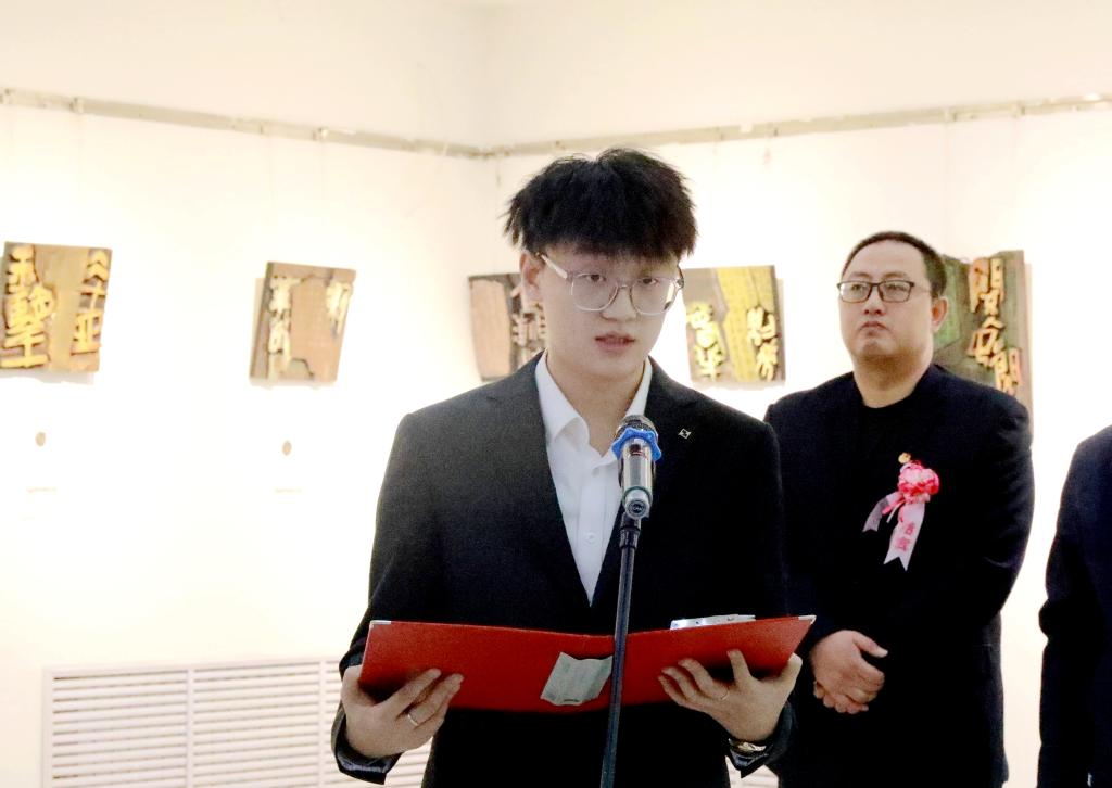 学生代表马永焱向李文宝教授的辛勤付出表达了真诚的感谢,感谢李文宝教授以丰富的理论知识与精湛的实践技巧汇聚成一堂堂生动的现代书刻课程,他表示将谨记老师的教诲,不断努力,砥砺前行,自觉承担起传承和弘扬中华优秀传统文化的重任。