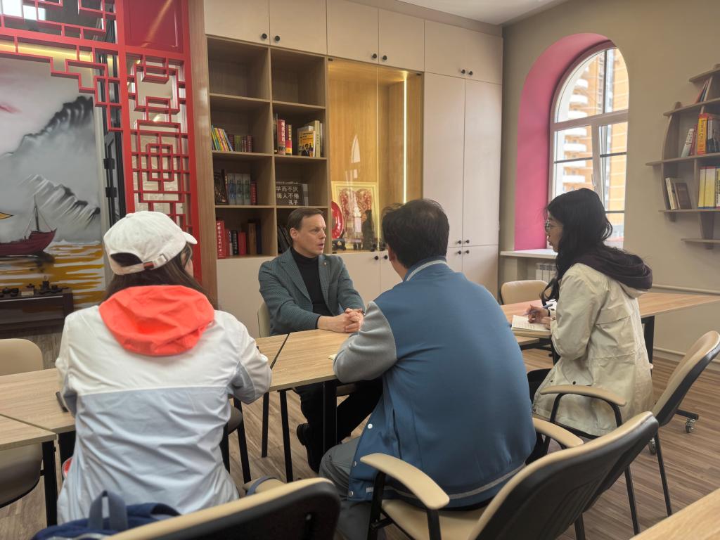 本网讯(特约记者 刘昱洁)5月20日,我校与布拉戈维申斯克国立师范大学合作共建的孔子学院俄方院长尼古拉・库哈林科接受《人民日报》和《环球时报》的联合采访,介绍该院18年发展成就及在中俄文化交流中做出的贡献。