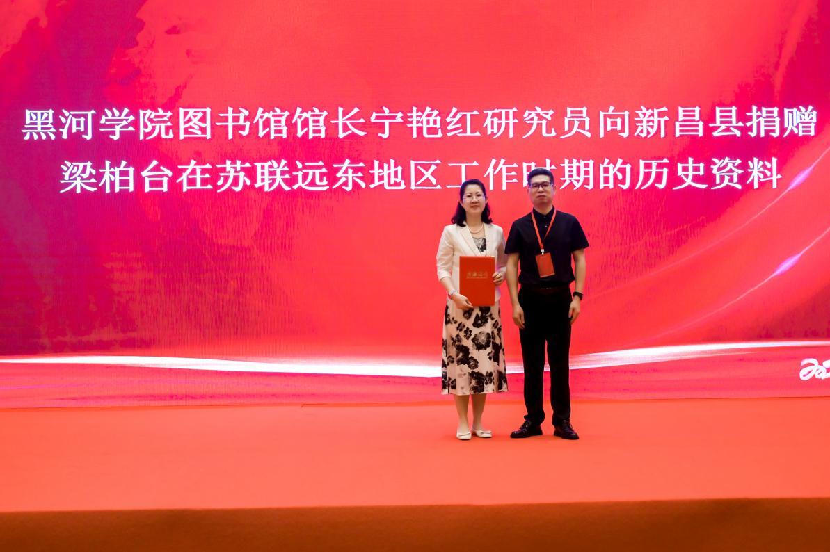 宁艳红向新昌县司法局捐赠了梁柏台在苏联远东地区工作时期的数十页珍贵历史资料。