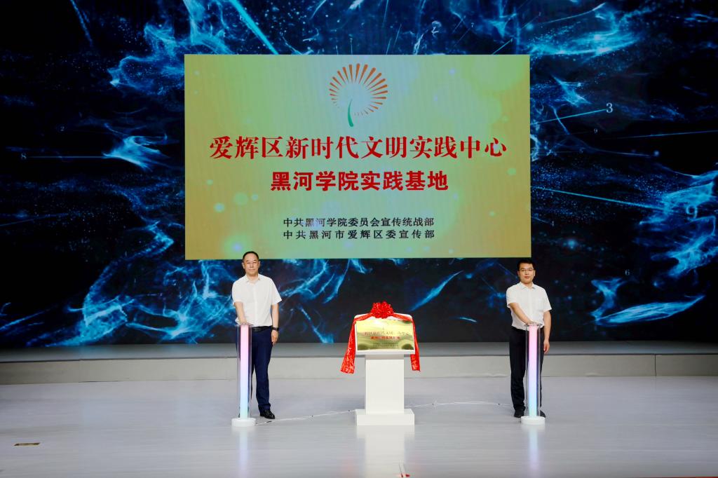 本网讯(记者 太译彬 摄影 陈虹旭)6 月 29 日,“爱辉区新时代文明实践中心开云足球竞猜下载实践基地” 揭牌仪式在爱辉区新时代文明实践中心举行。爱辉区委副书记李志国,爱辉区委宣传部常务副部长常彬强,爱辉区委宣传部副部长崔京京;校党委副书记安全义,党委委员、宣传统战部部长高孝成出席仪式,音乐学院党总支书记崔安宁及校区双方相关部门负责同志,学校民主党派及留学人员联谊会教师代表共同参加仪式。