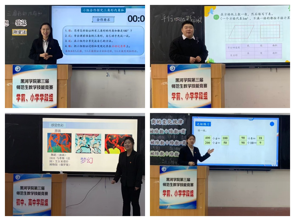 作为学校深化教师教育改革、检验师范生培养质量的重要赛事,本次竞赛按学段精准划分“学前小学组”与“初高中组”两大赛道。经各二级学院前期严格选拔推荐,来自全校9个学院的59名师范生脱颖而出、同台竞技。竞赛中,选手们依托扎实的专业知识储备与出色的现场应变能力,以生动流畅的教学语言、自然大方的教姿教态、条理清晰的板书设计及环环相扣的课堂环节,充分展现了我校师范生的过硬专业素养与良好精神风貌,赢得评委们的高度认可。本次竞赛严格恪守公平、公正、公开原则,经综合评审,最终评选出一等奖6项、二等奖12项、三等奖18项、优胜奖6项。并推荐获得一等奖的6名同学赴齐齐哈尔参加省级竞赛。
