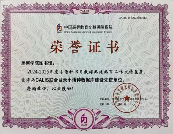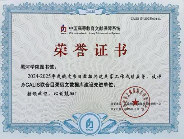 此项成绩的取得,是CALIS中心对我校在俄文书目数据建设方面的能力与共建贡献的充分肯定,更有力地彰显了我校在俄文文献资源领域特色化建设的价值。学校将以此为契机,持续夯实特色馆藏资源建设基础,深化服务体系建设,为学校打造教育向北开放新高地提供更加坚实的文献资源保障。