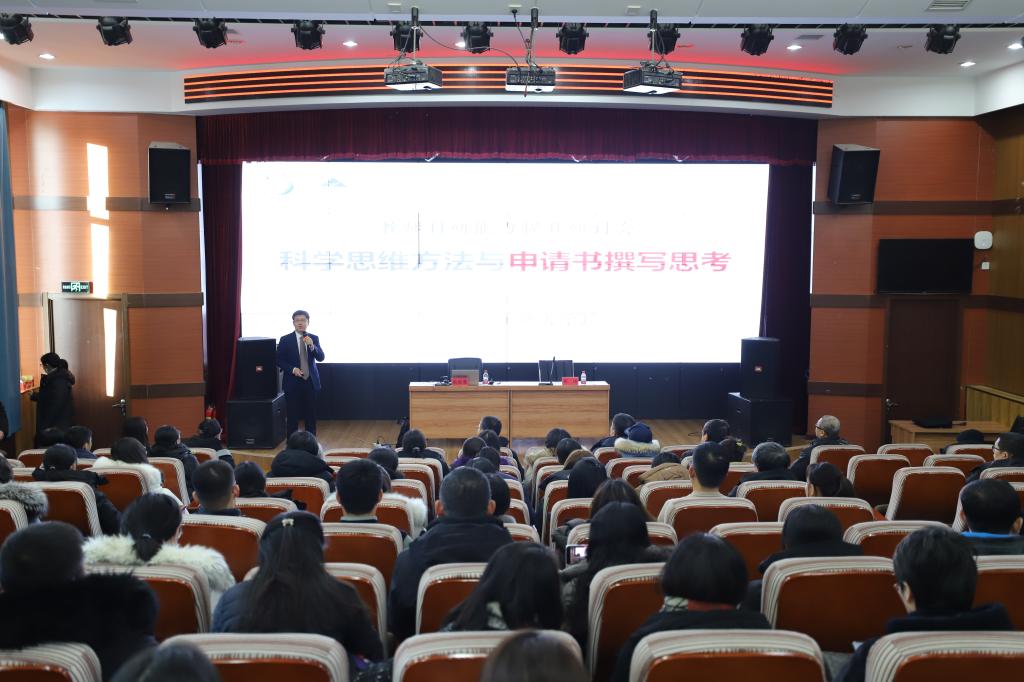 为持续推动学校2026年度科研项目申报工作,切实提升申报质量,学校特邀哈尔滨工业大学创新创业教育委员会主任、教育部创新创业教育指导委员会委员、哈尔滨工业大学能源学院高继慧教授来校开展专题辅导讲座。讲座由校党委委员、副院长荆涛主持,各学院(中心)科研工作负责人、高级职称人员和科研骨干以及科研处、理学院和计算机与信息工程学院全体教师120余人参加了本次讲座。
