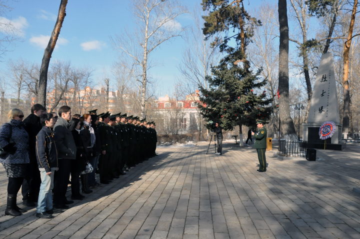 (俄罗斯留学生与边防官兵共同缅怀先烈)