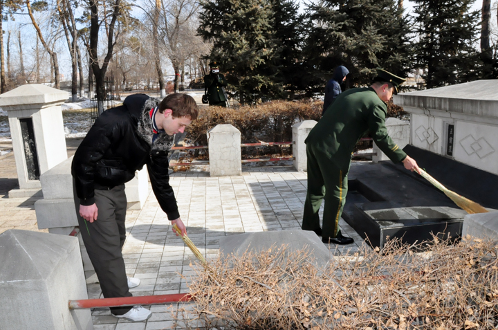 祭扫活动中,俄罗斯留学生与边防官兵共同向烈士们敬献了花圈,将一朵朵白花敬放在烈士墓旁,向为了今天幸福生活而献出生命的英雄们致敬、默哀。俄罗斯留学生们还与边防官兵开展了栽植“中俄友谊纪念树”的活动,师生们与官兵们一起把对革命英雄的缅怀之情寄托到这棵“中俄友谊纪念树”上,希望它承载着中俄友谊茁壮成长。祭扫活动让每一个热爱祖国、热爱民族的心灵,在追忆中得到升华。