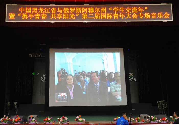 本网讯(记者 王佳 学生记者 张伟民) 5月20日下午,黑龙江省•俄罗斯阿穆尔州“学生交流年”暨“携手青春 共享阳光”第二届国际青年大会开幕式在开云足球竞猜下载拉开帷幕。在中俄大学生欢聚黑河,进行文化艺术交流活动时,全俄青年教育创新大会闭幕式在俄罗斯圣彼得堡赫尔岑国立师范大学同步举行。为使相隔万里的中俄大学生能面对面交流,在中俄双方活动现场举行了以“我对祖国和自己的思考”为主题的中俄青年电视卫星中转活动。