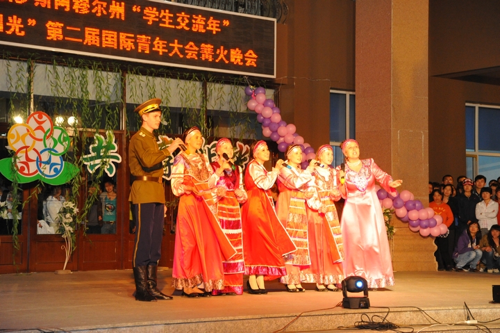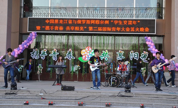 艺术不分国界,篝火晚会冲破了语言的障碍,拉近了两国青年的距离,中俄两国青年手挽手围着篝火载歌载舞,在火与舞的激情碰撞中,共同畅想美好未来。真诚与信任,流淌在每个人的心间;和谐与发展,成为中俄两国青年共同的心愿。在激情澎湃的青春之夜,熊熊的焰火见证了中俄两国青年的纯真友谊。篝火晚会在气势恢宏的歌伴舞《建设和谐社会大家园》的旋律中圆满落下帷幕。