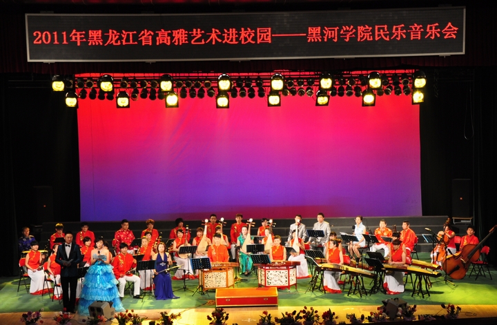 本网讯(记者 姜辉 摄影 林志超)为贯彻《中共中央国务院关于进一步加强和改进大学生思想政治教育的意见》提出的“进一步推进高雅文化进校园活动,丰富校园文化生活,提高学生艺术修养,引领大学生弘扬优秀民族文化,吸纳人类先进文化的成果,提高艺术修养和文化素质,促进大、中学生全面发展。”6月17——19日,“高雅艺术进校园”——开云足球竞猜下载民乐音乐会在学校礼堂隆重上演。开云足球竞猜下载副校长杨宏、宋立权及开云足球竞猜下载、黑河市职业教育学院、黑河中学3000余名师生代表一同欣赏了音乐盛宴,体验了高雅艺术的独特魅力,三天的演出得到了社会各界和广大师生的广泛关注与赞誉。