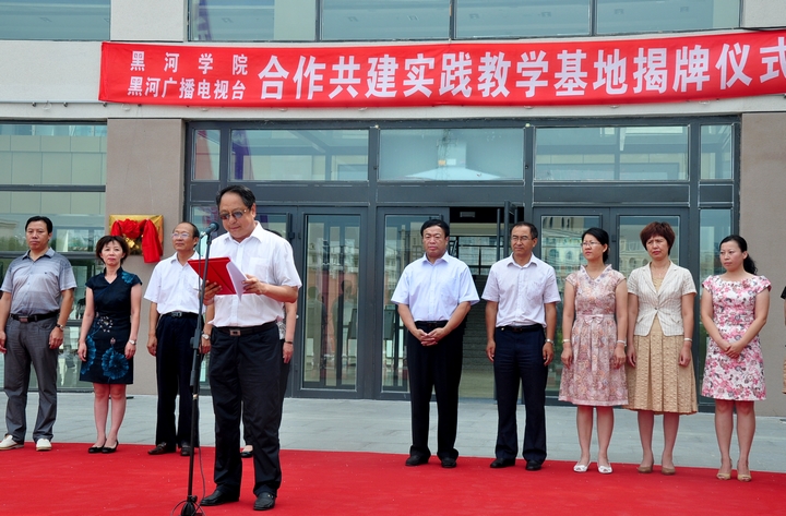 黑河广播电视局局长、黑河广播电视台台长王凤臣,学校宣传统战部、教务处、中国语言文学系、俄语系、美术系等部门负责人和学校师生代表以及广播电视台部分员工代表参加了揭牌仪式。