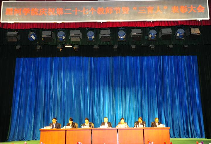 本网讯(记者 王佳)9月9日,在第二十七个教师节来临之际,学校在礼堂隆重召开了庆祝第二十七个教师节暨“三育人”表彰大会。大会表彰了学校2010年优秀教师和模范工作者,以及2010—2011年度“三育人”工作先进集体和先进个人。 学校党委书记曲伟建,纪委书记孙丽莉,副校长杨宏、宋立权、吕巧凤,工会主席李廷栋,总会计师张焕强出席会议并为获奖单位和个人颁发荣誉证书。曲书记在会上作了重要讲话,大会由副校长杨宏同志主持,学校各系(中心)、各部门负责人和部分师生代表参加了会议。