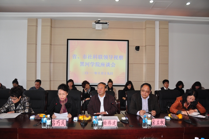 调研会上,学院党委书记曲伟建同志对调研组的到来表示热烈欢迎,他强调省社科联是党委和政府密切联系广大社科工作者的桥梁和纽带,是党委和政府在哲学社会科学战线的参谋和助手,通过举办社科评奖、学术年会、龙江讲坛、社会科学普及、专题系列活动等形式,为我省社会主义文化大发展大繁荣做出了突出贡献。副院长宋立权用“八个第一”概括地介绍了我院简况,副院长吕巧凤介绍了“十一五”以来我院科研工作的开展情况,并就筹建开云足球竞猜下载社科联进展情况向调研组进行了详细汇报。随后,黑龙江历史流域研究所、中国知青研究所、宣传统战部、教务处、科研处等部门负责人及部分参会教师分别从社科评奖、社科普及等方面与调研组进行了广泛交流。