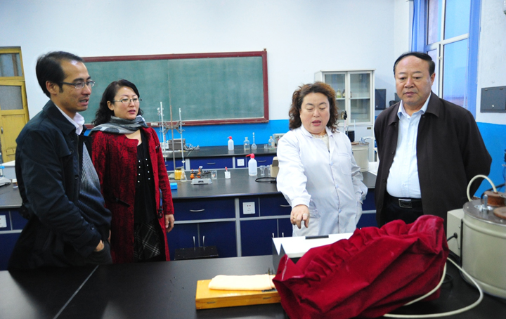 本网讯(记者 姜辉 学生摄影 冯昌军)为进一步了解我院实验教学运行和实验室建设基本现状,确保学院本科合格评估工作顺利有序进行,11月3日下午,学院党委书记曲伟建同志在教务处工作人员的陪同下深入物理化学系,对物理化学系实验教学运行和实验室建设情况进行了全面细致的检查。