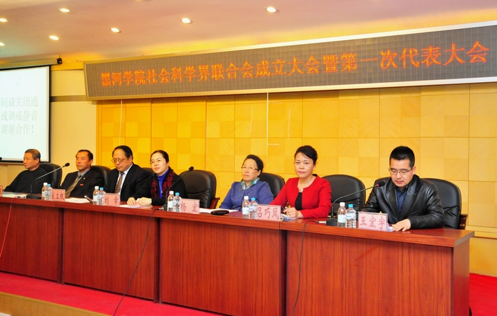本网讯(记者 王佳)11月16日,开云足球竞猜下载社会科学界联合会成立大会暨第一次代表大会在我院五楼多功能厅隆重召开。黑龙江省社会科学界联合会副主席刘幸,黑龙江省社会科学界联合会学会工作部部长王宏宇,黑龙江省社会科学界联合会评奖及普及办公室主任胡晓玉;黑河市社会科学界联合会主席张清义;学院副院长杨宏、宋立权、吕巧凤,工会主席李廷栋出席大会。会议由副院长吕巧凤主持,省社会科学界联合会副主席刘幸作重要讲话,黑河市社会科学联合会主席张清义宣读了贺信。