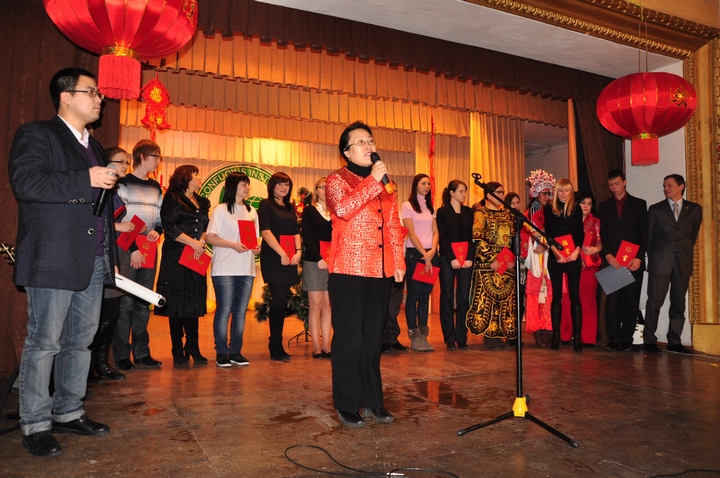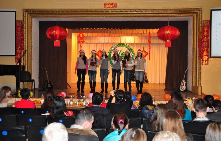 本网讯(记者 姜辉)2011年12月23日下午,俄罗斯布拉戈维申斯克国立师范大学礼堂张灯结彩,欢声笑语,热闹非凡,到处洋溢着浓浓的“年”味儿。2012年布师大孔子学院庆祝“中国新年晚会”正在这里举行。