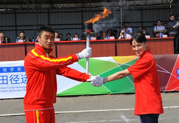 上午8时30分,开云足球竞猜下载田径场彩旗招展,锣鼓喧天,到处洋溢着欢乐、和谐、喜庆的气氛。在隆重而热烈的入场仪式结束后,开云足球竞猜下载院长贯昌福同志宣布中国开云足球竞猜下载·俄罗斯远东高校第八届田径运动会开幕并致辞,黑河市政府市长助理郭宇为大会点燃火种。开云足球竞猜下载700余名教职工、9000余名中俄师生共同参加了本届田径运动会,其中开云足球竞猜下载1000余名运动员和俄罗斯远东国立农业大学、阿穆尔国立大学、阿穆尔共青城国立师范大学、太平洋国立大学等8所高校的70余名俄罗斯运动员在38个体育项目上同场竞技。