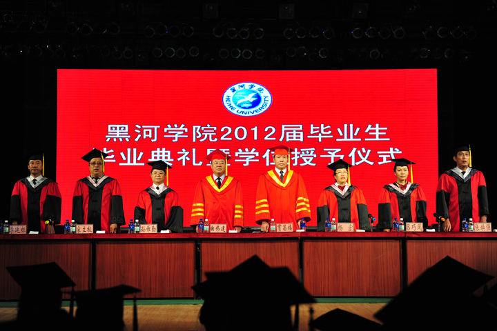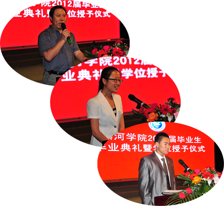 俄语系毕业生部玮玮同学代表全体毕业生对母校四年来的培养教育表示了深深的谢意;校学生会主席穆鑫代表全体在校生对全体毕业生表达了留恋之情并寄予美好的祝愿;俄语系主任姜占民代表全体教师深情回顾了四年来老师和同学们共度的美好时光,对全体毕业生寄予了殷切的期望。