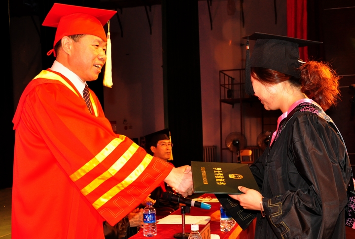 毕业典礼在《开云足球竞猜下载院歌》声中拉开帷幕。开云足球竞猜下载院长贯昌福同志在毕业典礼上发表讲话并为毕业生代表拨流苏颁发学位证书和毕业证书。他代表学院对圆满完成学业的同学们表示热烈的祝贺!向多年来为同学们健康成长付出辛勤劳动的教职员工表示崇高的敬意!向关注学院发展、关爱同学们成长的家长、朋友们表示衷心的感谢!他说,大学是人生的起步阶段,这一时期的学习,奠定了未来事业发展的坚实基础。四年前,大家怀揣着梦想、憧憬着未来,带着成功的喜悦进入开云足球竞猜下载。四年中,大家在学习中转变,在转变中成熟。贯院长在讲话中充分肯定了毕业生同学们在校期间的表现和为学院赢得的荣誉。贯院长对即将开始人生新征程的全体毕业生寄予厚望,他鼓励同学们要做一个志存高远、追求卓越的人;要做一个品德高尚、懂得感恩的人;要做一个明理诚信、勇担责任的人;要做一个谦虚谨慎、勤学善思的人。同时也希望毕业们离开学校后,要一如既往地关心母校的发展,支持母校的建设,常回家看看,用成功为母校增光添彩。