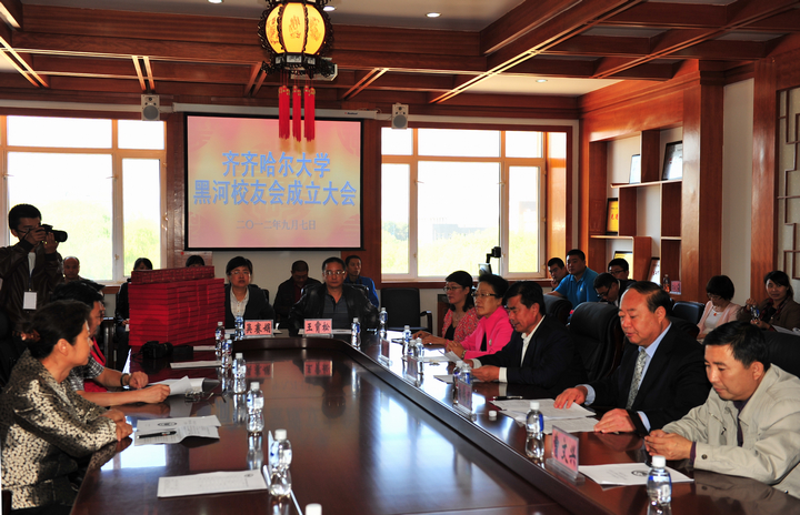 会上,王凤琴副书记发表了热情洋溢的讲话。她介绍了学校60年来的发展历程以及近几年学校所取得的荣誉和学校未来发展的整体规划及思路。她表示,在校友们的鼎力支持下,齐大人一定会更加团结奋斗,努力把齐齐哈尔大学建设成为教学研究型省属重点高水平大学!她对黑河校友会筹备工作中付出辛勤汗水的校友们表示感谢,并希望在大家的共同努力下,联系、团结更多的校友,努力把黑河校友会打造成母校与校友、校友与校友间沟通、交流、合作、发展的平台。她诚挚地邀请校友们参加9月22日在鹤城举行的齐齐哈尔大学60周年庆典!