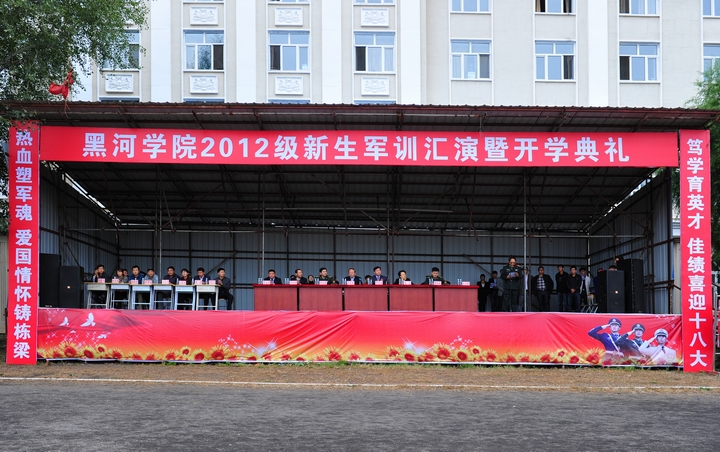 汇演中,院长贯昌福向来自全国18个省、自治区、直辖市的2500余名新生的到来表示热烈的欢迎;向在军训中取得优异成绩的同学们表示热烈的祝贺;向黑河军分区和65951部队首长及全体承训官兵表示诚挚的感谢与崇高的敬意!贯院长指出,本次军训组织工作准备充分、细致周密,训练工作注重实效、特点突出,承训官兵严格施训、训管结合,参训同学训练刻苦、成效显著。他强调,本次军训经受住时间紧,任务重,天气等不利因素的多重考验。通过军训,同学们磨练了意志,培养了作风,强健了体魄,增强了国防观念、纪律观念和集体荣誉感。
