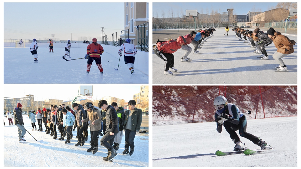为了培养更多更优秀的冬季运动人才,学校把冬季项目作为竞技体育的突破口,着力建设冰球、花样滑冰、滑雪、速度滑冰等特色课程,并针对不同专业学生的身心发展需要,科学合理地设置课程内容。北方的冰雪期一般集中在11月中旬到次年3月下旬近五个月内,而非体育专业学生每周仅有1节体育课程,也就是冰雪运动的课堂教学每学期仅有4—6节课,这对于冰雪运动教学来说远远不够。因此学校对现有的冰雪运动教学内容进行进一步的开发与建设,在非体育专业的冰雪运动课堂上增加一些打雪仗、堆雪人等趣味性较强的民族传统冰雪运动,组织学生成立冰球协会、滑雪社团等冰雪运动体育协会,并充分利用课内外时间开展多种形式的体育活动。在“万名青年上冰雪”暨青年冬季阳光体育大会活动中,学校开展速度滑冰赛、冰球比赛、雪地足球比赛、“我爱我校”千人环校跑、冰上趣味比赛等一系列丰富多彩的活动,让学生们依据自己的兴趣、爱好选择适宜的冰雪运动项目,在运动中充分体验到了冬季体育运动的乐趣。生动活泼、开拓创新的冰雪运动文化氛围正在北疆校园逐步形成。