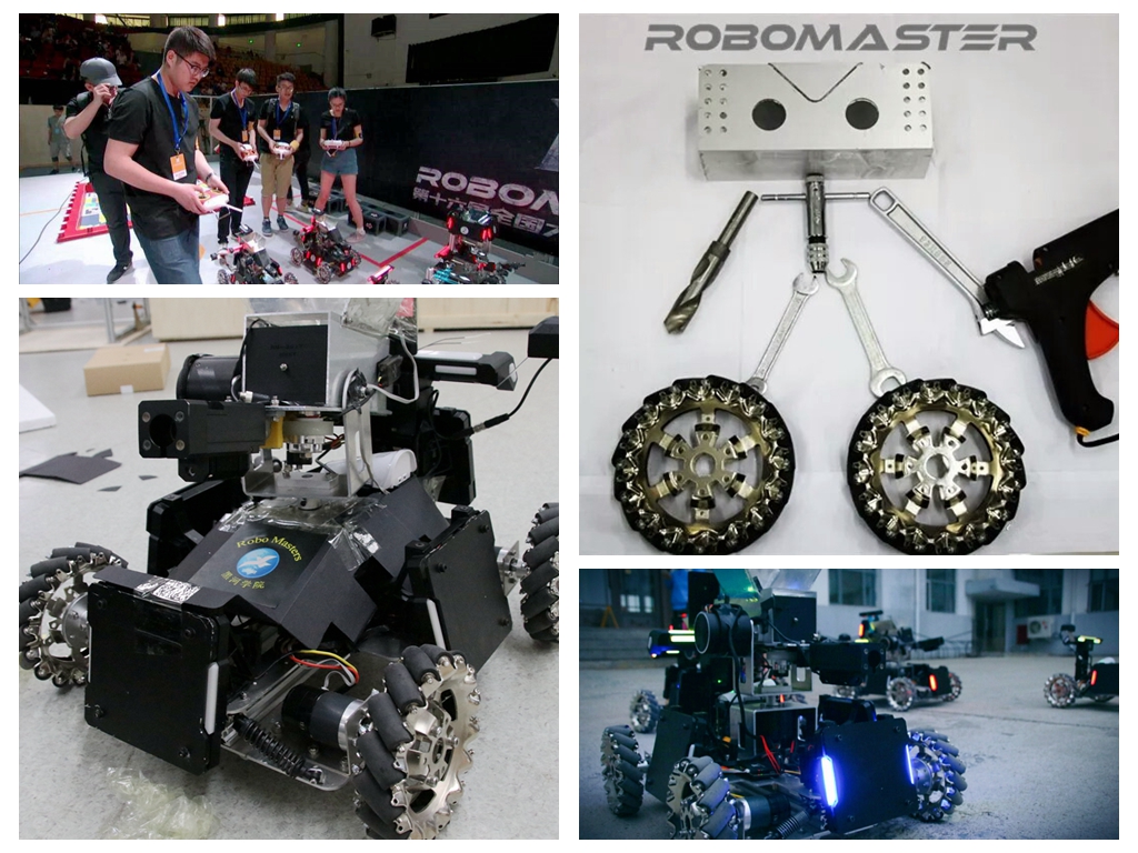 RoboMaster全国大学生机器人大赛是一项机器人射击对抗竞技比赛,类似电子竞技,但是需要参赛者独立设计、制造机器人并编写程序。在对抗赛中,双方各自操控自己的机器人向对方发射弹丸使其血量降低,或在攻下对方的任意机器人即拿下一血之后攻击对方基地,也可以通过占有机关立柱来获得有利的加成。共有七个机器人参与对战,分别是全自主运行的基地机器人和需要操控手进行操控的英雄机器人、步兵机器人、工程机器人和空中机器人。