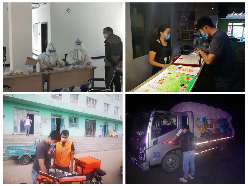静国梁,体育学院2016级社体一班毕业生,现就职于青河县市场监督管理局。7月16日,当他们抵达新疆阿勒泰地区青河县后,便接到了即将封城的通知。由于市场监督管理局要保障广大市民的生活需求,静国梁并没有像大多数同行来的同学一样接受隔离,而是在做了核酸检测后,立刻投入到紧张的工作中。